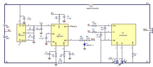6)電量管理控制芯片(BQ26500):功能完整的電量檢測計,具有一個測量電壓與溫度的模數(shù)轉(zhuǎn)換器(ADC) 和一個測量電流與充電感測的模數(shù)轉(zhuǎn)換器。電量檢測計具有一個微處理器,負責執(zhí)行電量檢測計,能夠提供剩余電量狀態(tài)(Remaining State of Capacity)等信息,BQ26500產(chǎn)品還提供剩余可運行時間 (Run Time to Empty)。主機可隨時向電量檢測計查詢這些信息,將電池信息通知用戶。電量檢測計的使用非常方便。讓使用者隨時掌握電池電能。